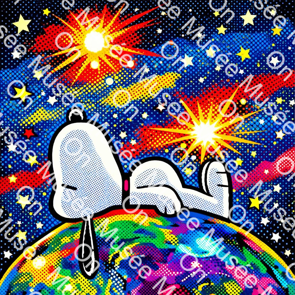 In a universe bursting with color, motion, and endless signals, a quiet figure rests atop a glowing planet. Rendered in bold pop-art textures and halftone patterns, this portrait contrasts explosive cosmic energy with calm detachment. It reflects a modern state of mind—where serenity is not found by escaping the world, but by rising above its noise. A playful yet thoughtful celebration of stillness, balance, and perspective in an overstimulated era.